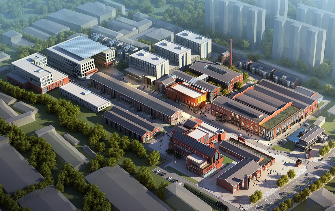 新工厂高新技术产业园雄踞汉江湾,古田中心位,保留了老铜材厂历史痕迹的同时,又提取创意元素设计园区建筑...